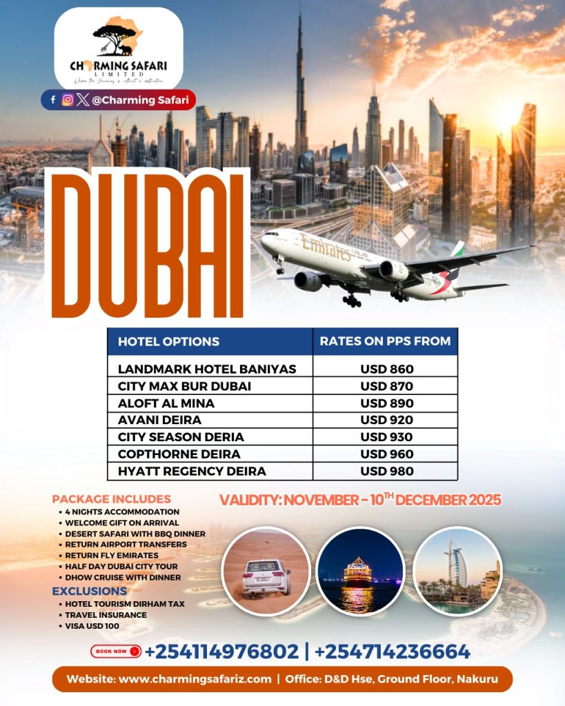 Charming Safariz is a trusted tour and travel company based in Kenya, serving clients across Kenya and worldwide.